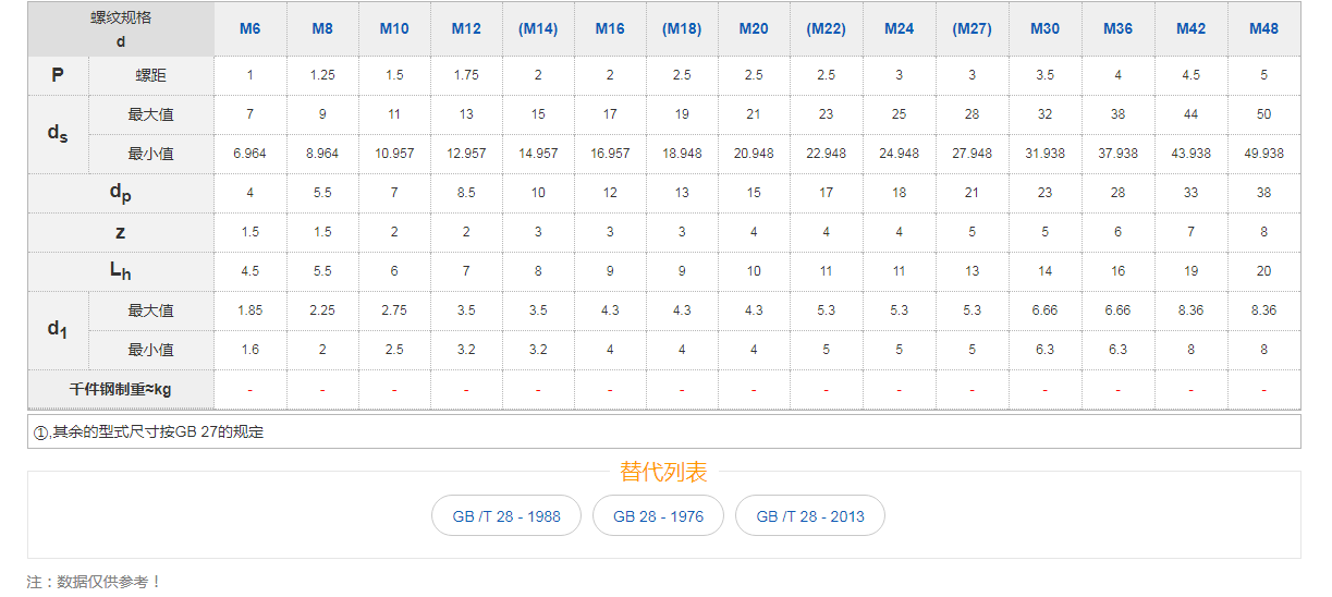 六角头螺杆带孔加强杆螺栓2013年最新国标 六角头螺杆带孔加强杆螺栓2013年最新国标 六角头螺杆带孔加强杆螺栓的专业简图如下: 2013年国家对六角头螺杆带孔加强杆螺栓的最新标准: 但恒奥佳仍在使用1988年的六角头螺杆带孔加强杆螺栓国家标准。